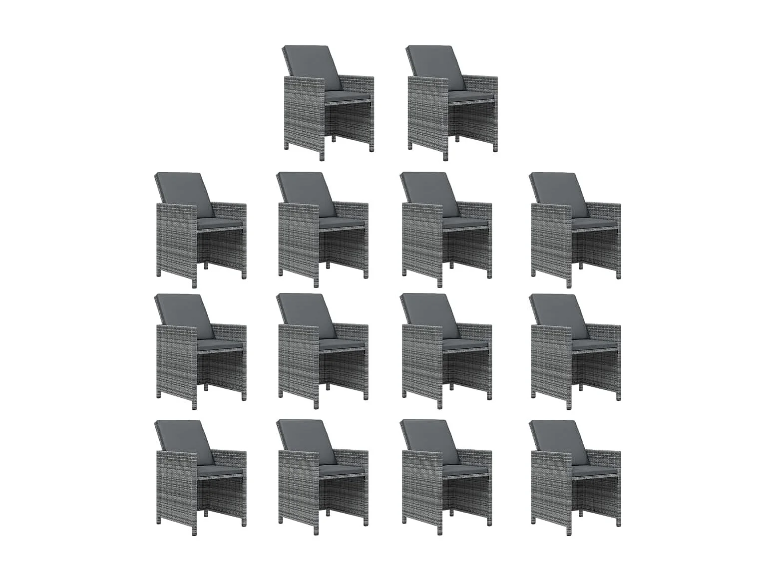 Set comedor de jardín con cojines 15 piezas ratán sintético gris