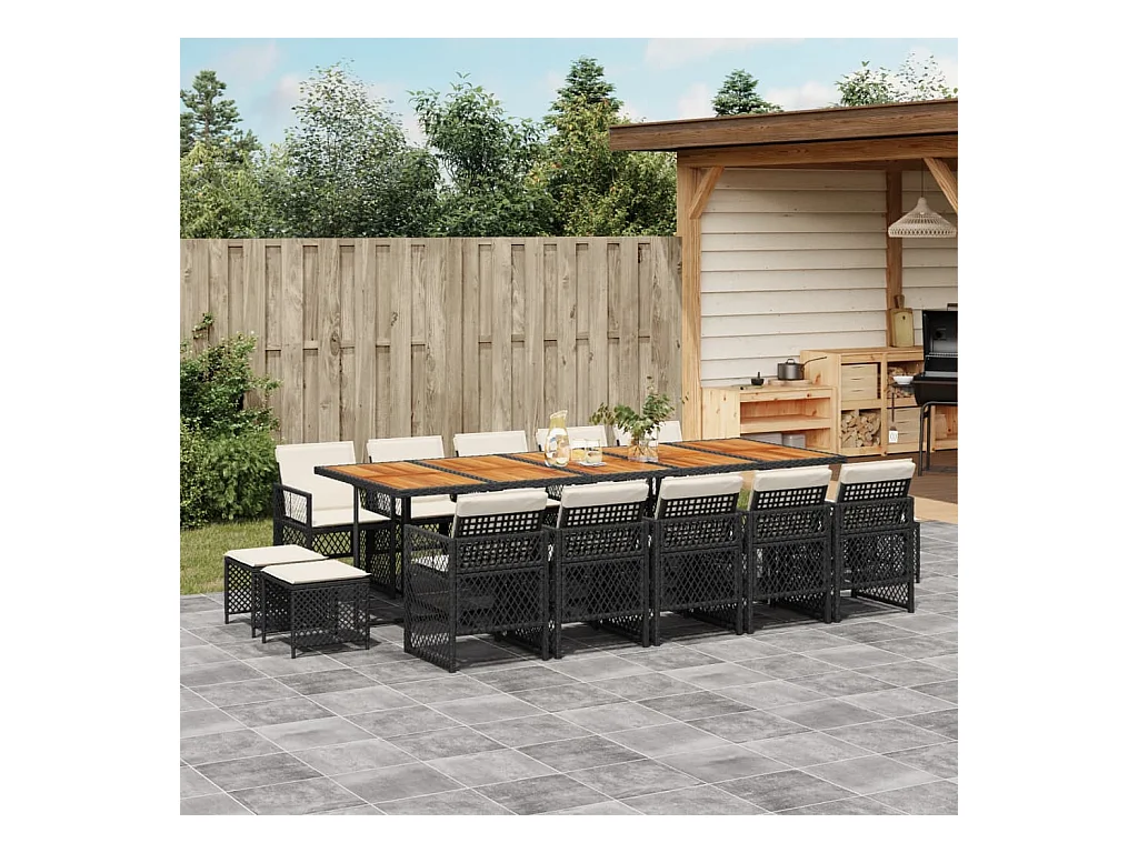 Set comedor de jardín con cojines 15 piezas ratán sintético negro
