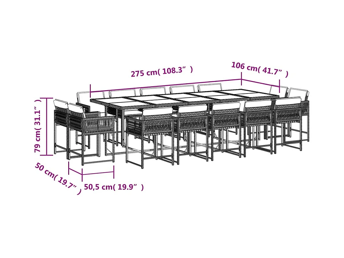 Conjunto de mesa y sillas para jardín rectangular