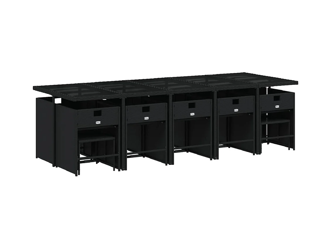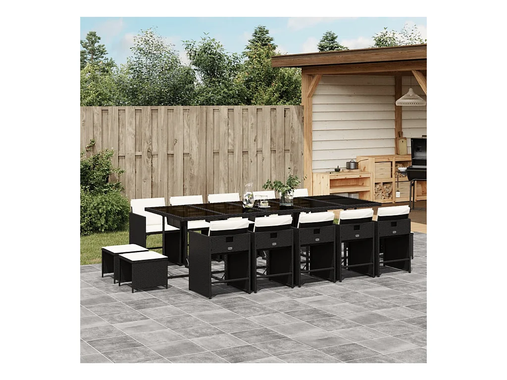 Set comedor de jardín con cojines 15 piezas ratán sintético negro