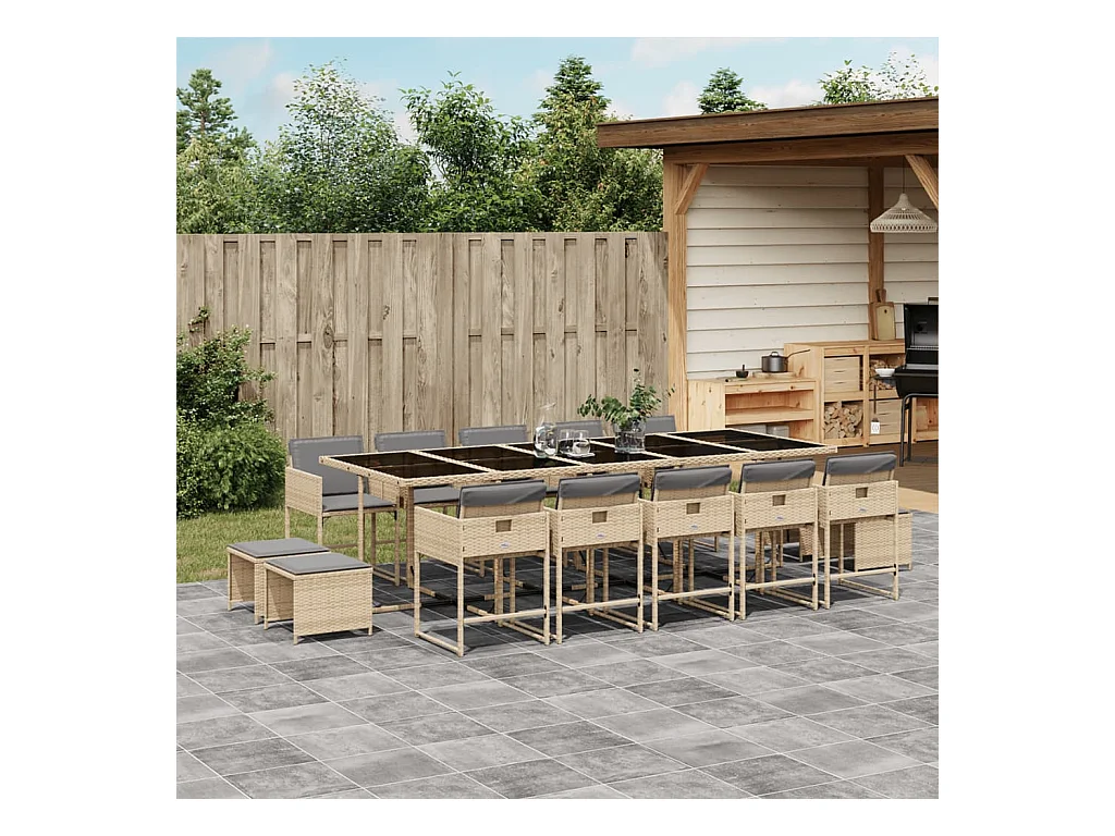 Set comedor de jardín con cojines 15 pzas ratán sintético beige