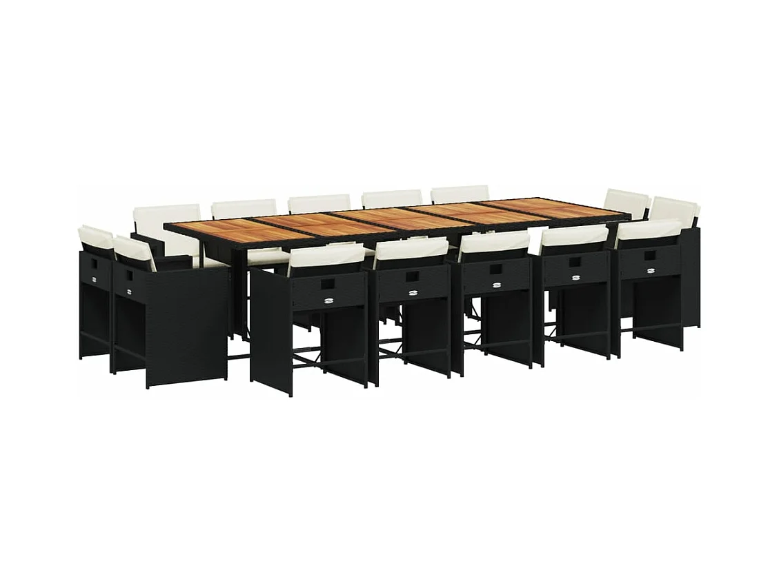 Set comedor de jardín con cojines 15 pzas ratán sintético negro