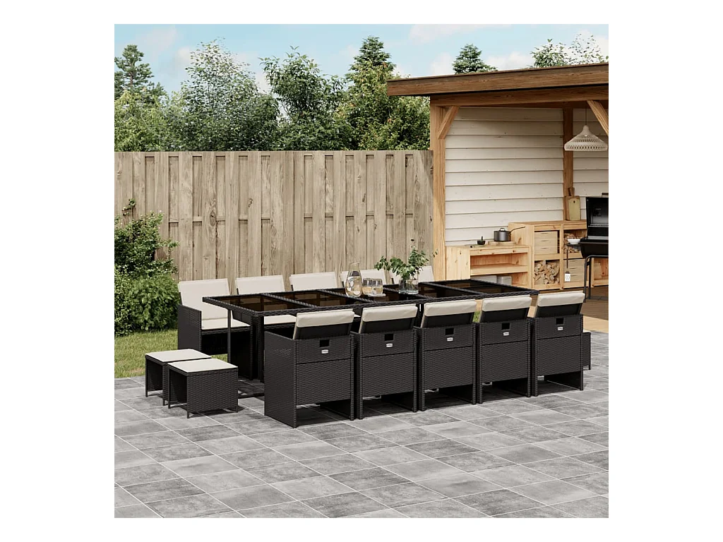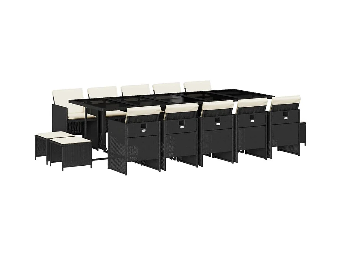 Set comedor de jardín con cojines 15 pzas ratán sintético negro