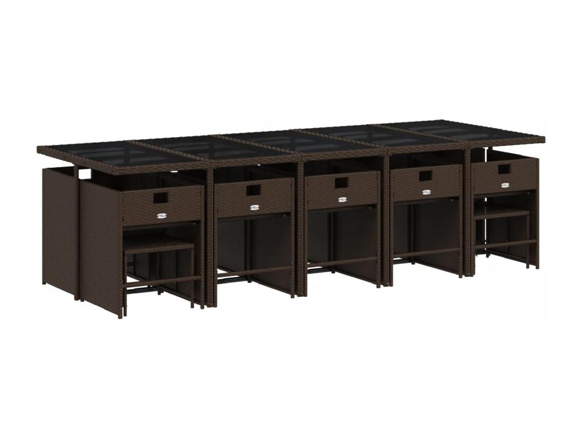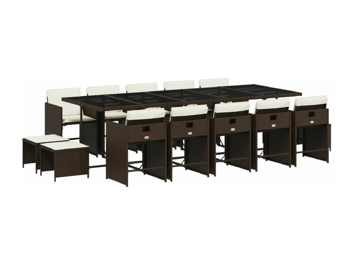 Set comedor de jardín y cojines 15 piezas ratán sintético marrón