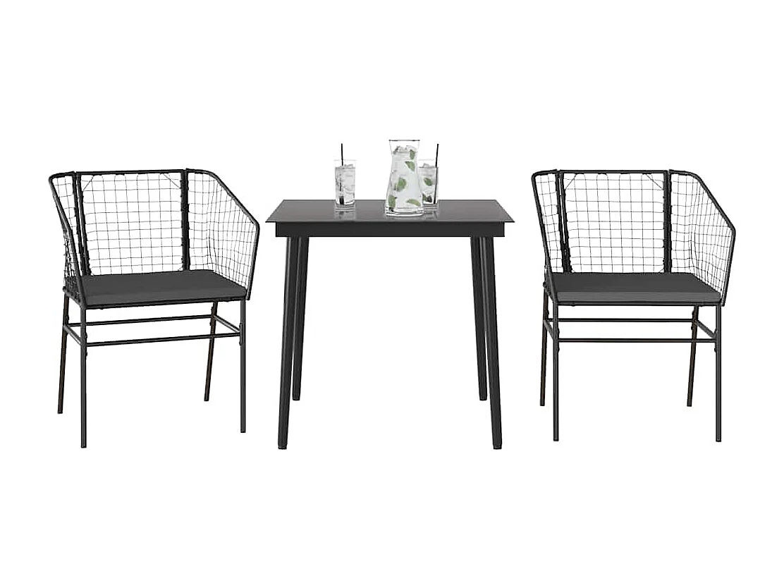 Set comedor jardín 3 piezas cojines ratán sintético vidrio negro