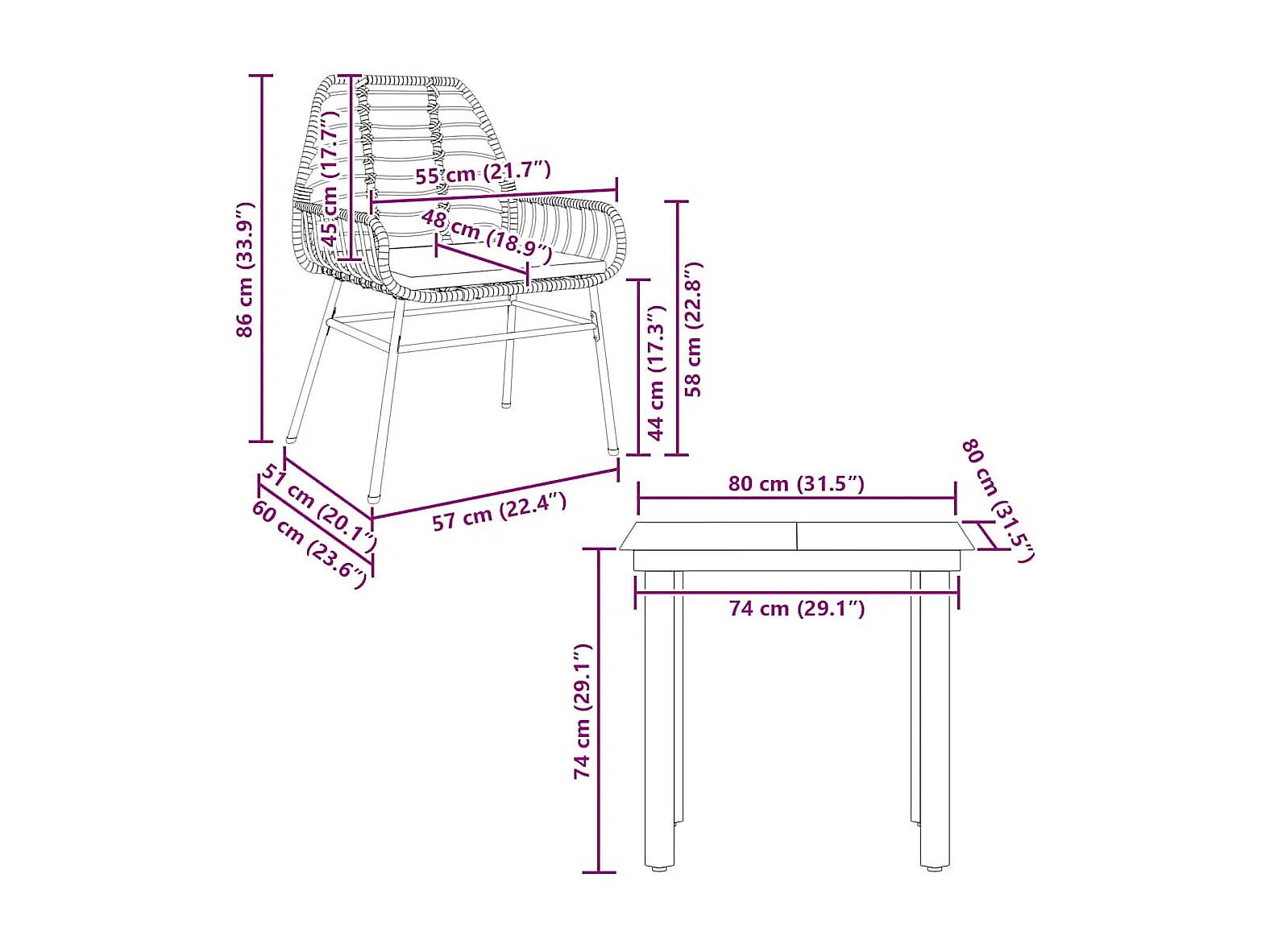 Set comedor jardín 3 piezas cojines ratán sintético vidrio negro