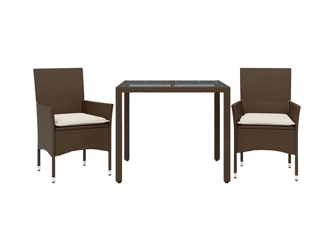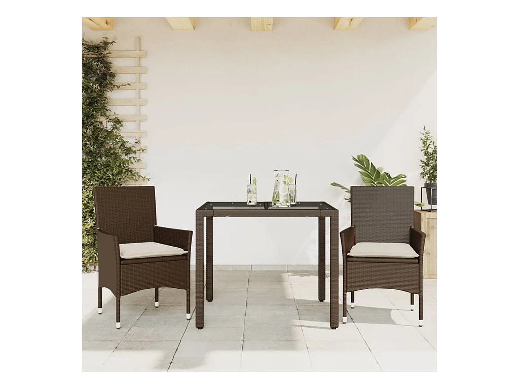 Set comedor jardín 3 pzas cojines ratán sintético vidrio marrón ES574907