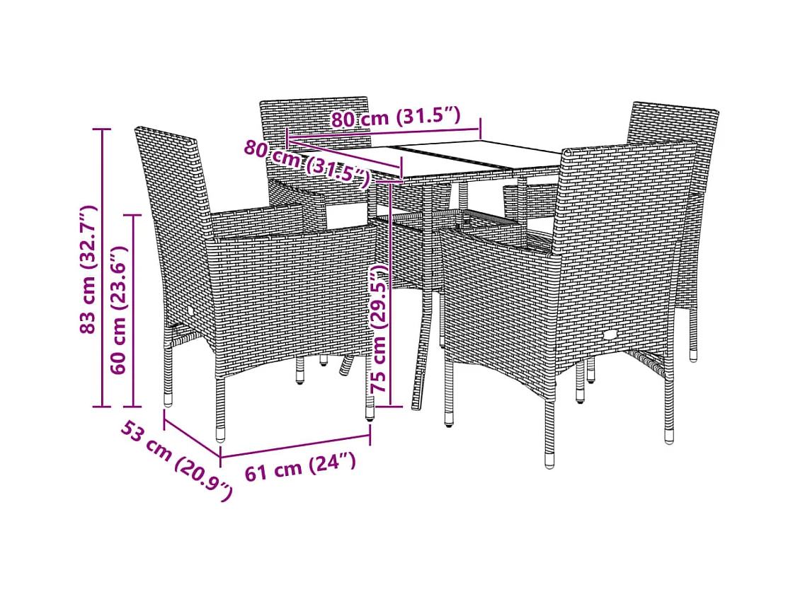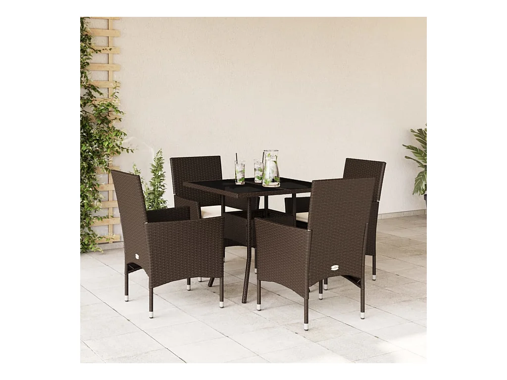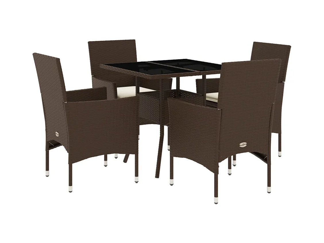 Set comedor jardín 5 pzas cojines ratán sintético vidrio marrón