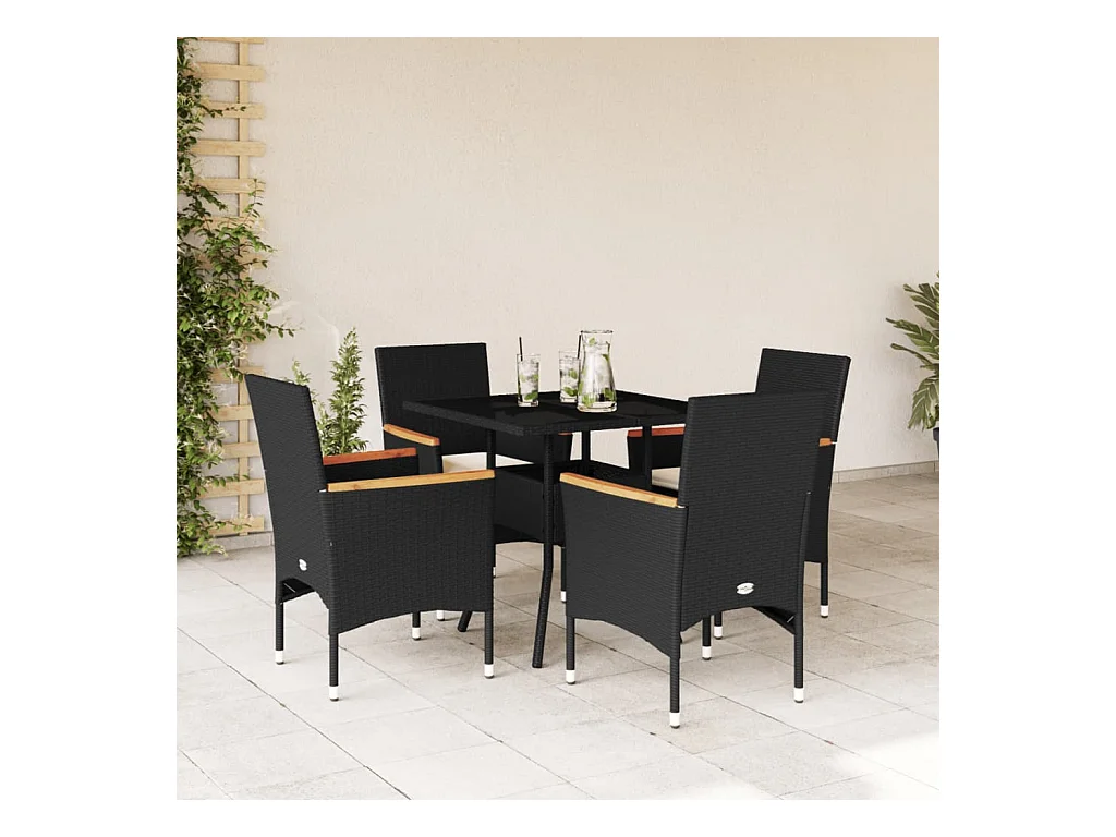 Set comedor jardín 5 pzas cojines ratán sintético vidrio negro ES458339