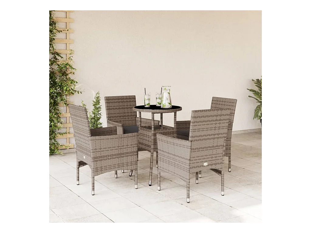 Set comedor jardín 5 pzas y cojines ratán sintético vidrio gris ES281045