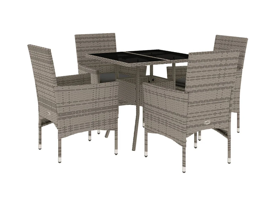 Set comedor jardín 5 pzas y cojines ratán sintético vidrio gris ES281045