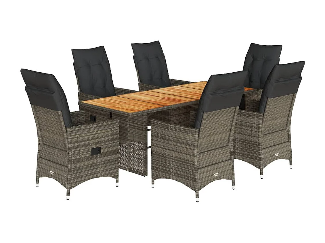 Set comedor jardín 7 piezas y cojines ratán sintético gris