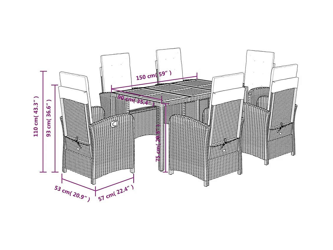 Set comedor de jardín 7 pzas con cojines ratán sintético beige