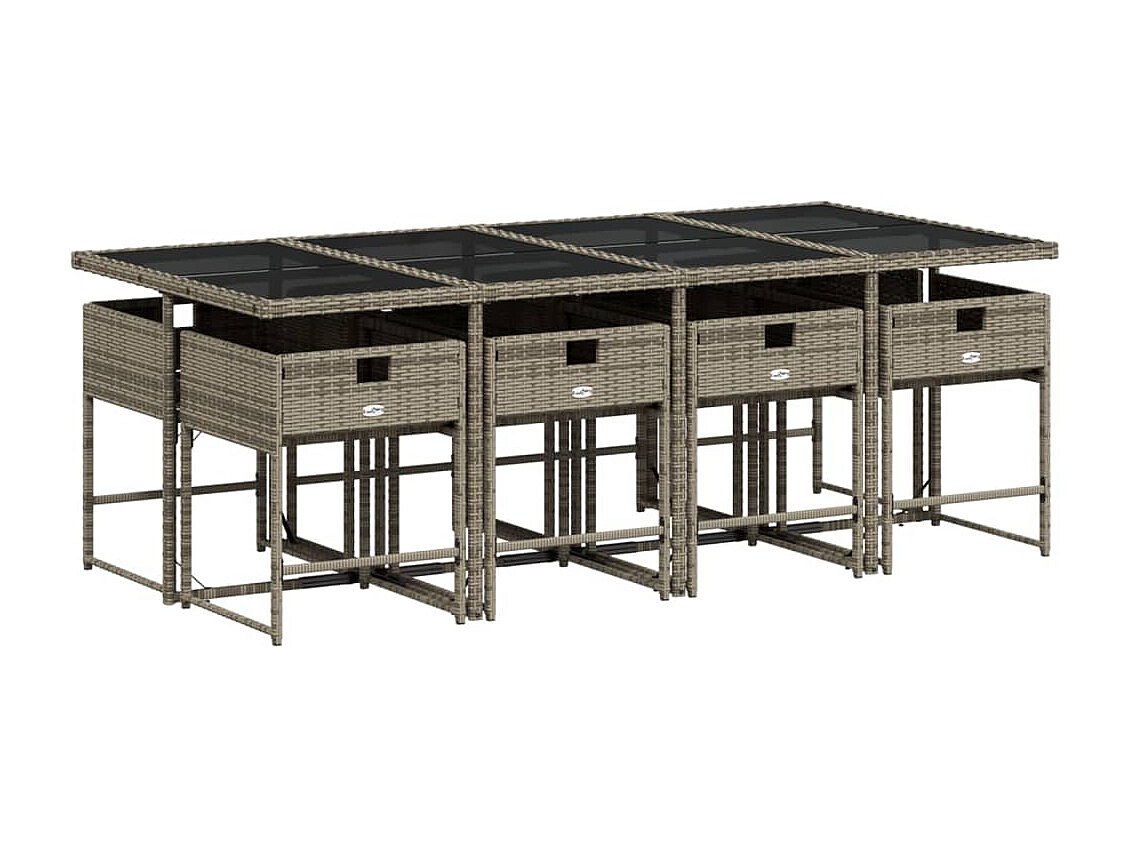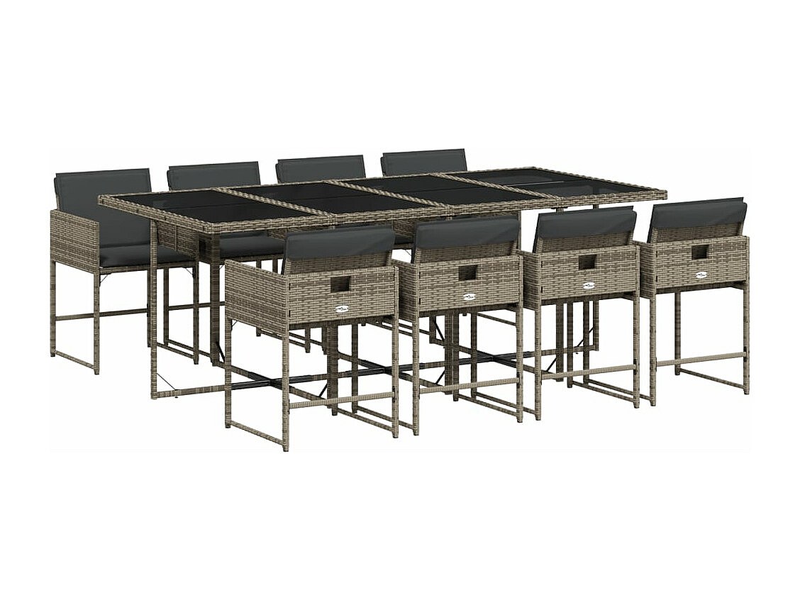 Set comedor jardín 9 piezas y cojines ratán sintético gris