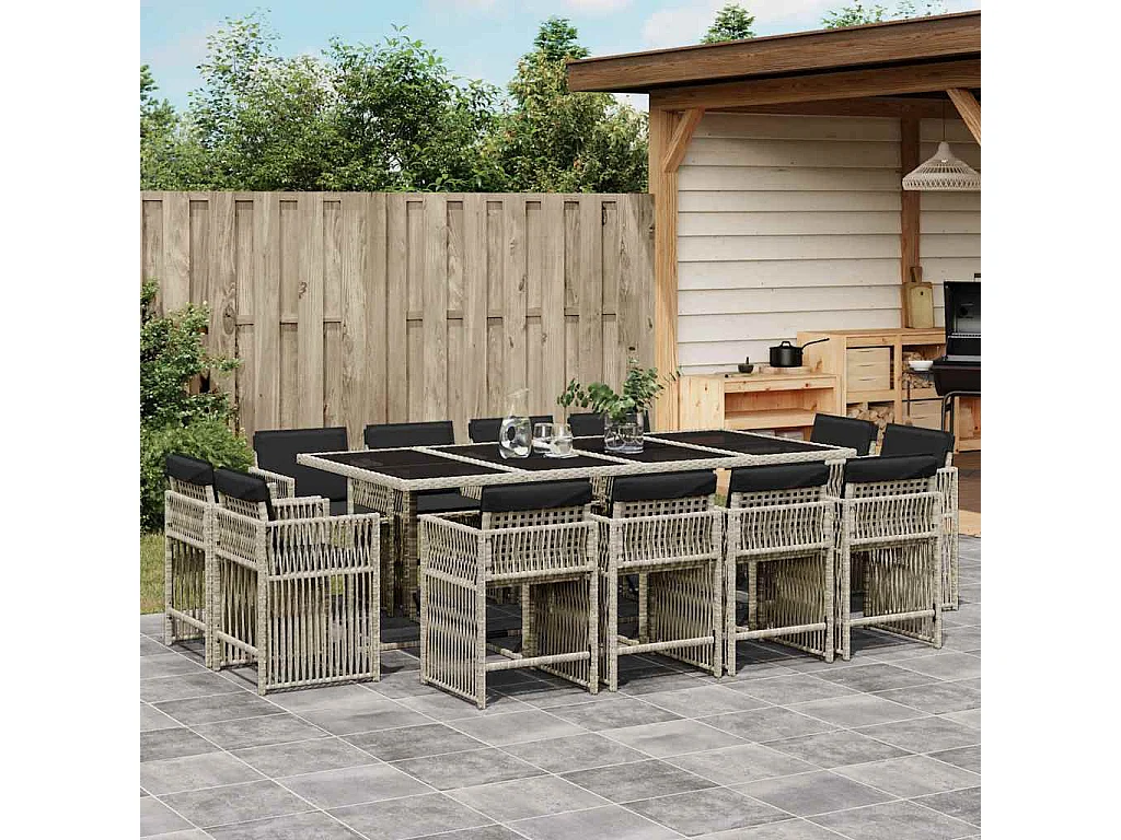 Set comedor jardín y cojines 13 piezas ratán sintético gris claro
