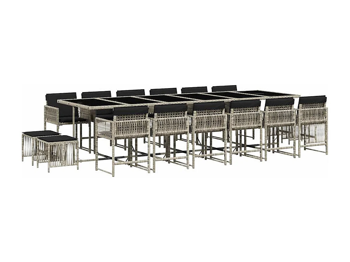 Set comedor jardín y cojines 17 piezas ratán sintético gris claro