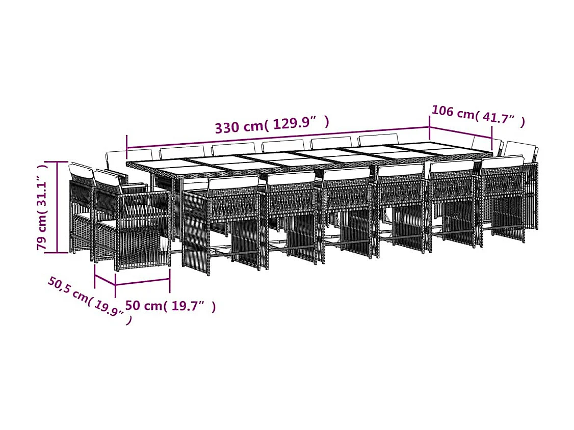 Set comedor jardín y cojines 17 piezas ratán sintético gris claro