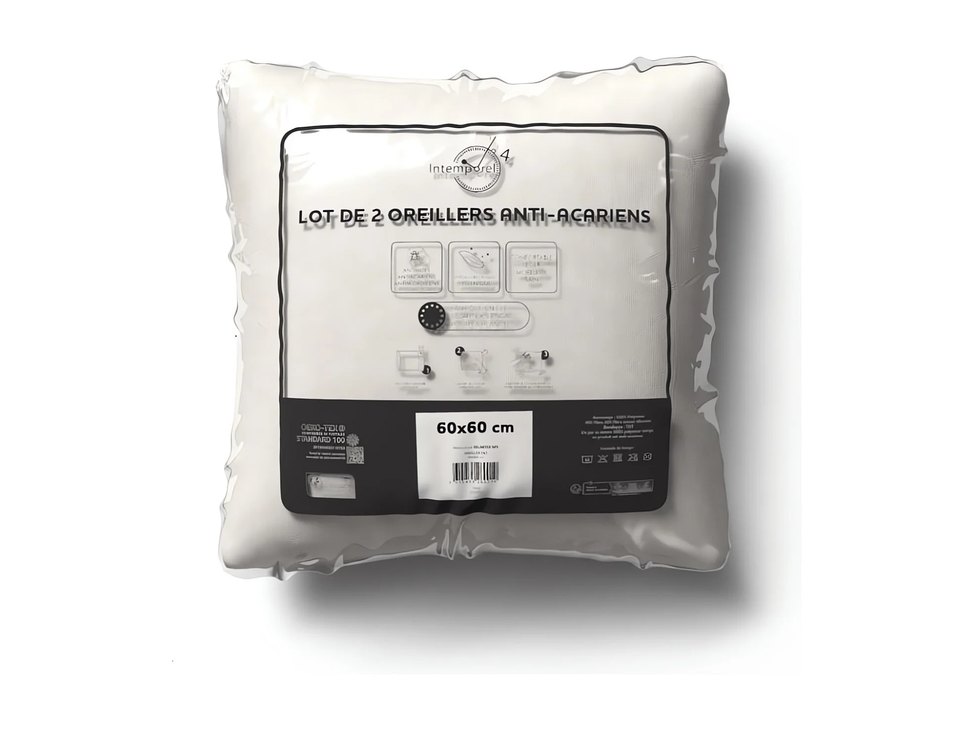 Set de 2 almohadas antiácaros 60x60 cm, de Intemporel
