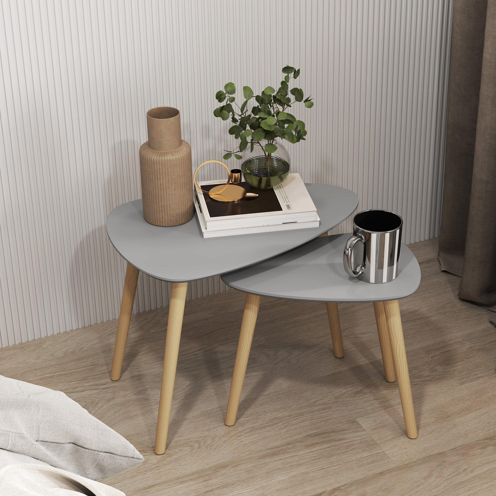Con una estética de inspiración nórdica y líneas suaves, cada mesa combina una encimera de forma triangular en acabado laminado con patas de madera de pino ligeramente inclinadas. El resultado: un diseño moderno que encaja fácilmente en cualquier ambiente, aportando calidez y estilo. Estas mesas auxiliares no solo son bonitas, también están pensadas para el día a día. Sus materiales garantizan resistencia, estabilidad y fácil limpieza. Además, cada encimera soporta hasta 10kg, ofreciéndote espacio más que suficiente para colocar libros, jarrones, velas u otros objetos decorativos. Una propuesta práctica, decorativa y con un precio muy competitivo. Dale un giro a tu salón con este set de mesas auxiliares Bird. Moderniza tu hogar sin complicaciones y con mucho estilo.