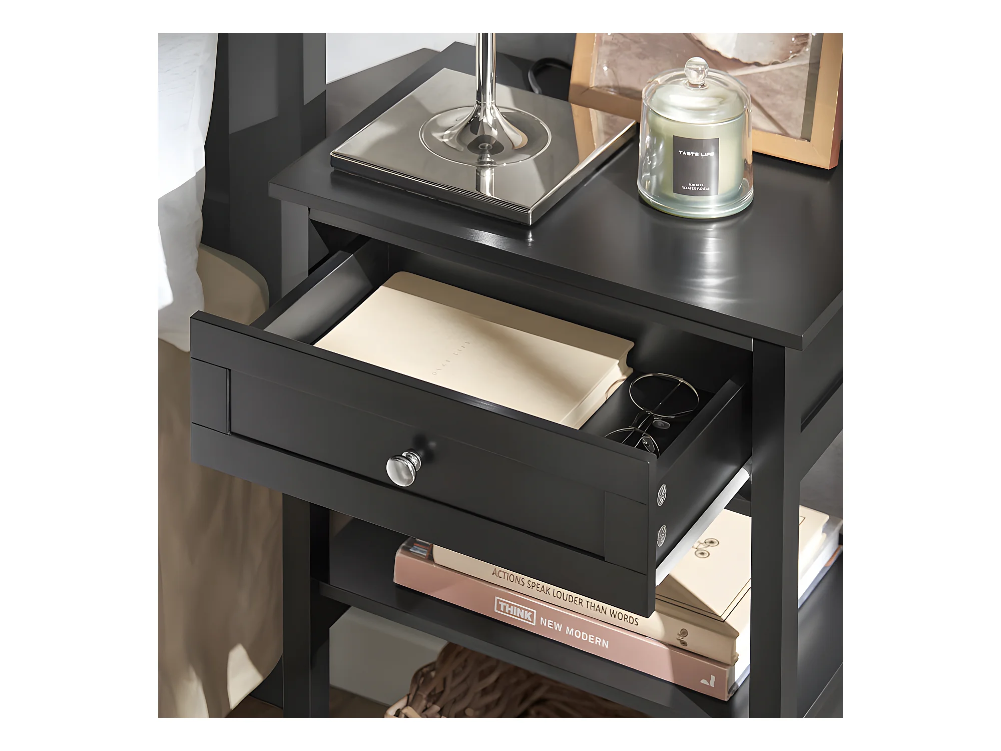 Mesita de noche Negra 36x30x45 cm Madera maciza de pino