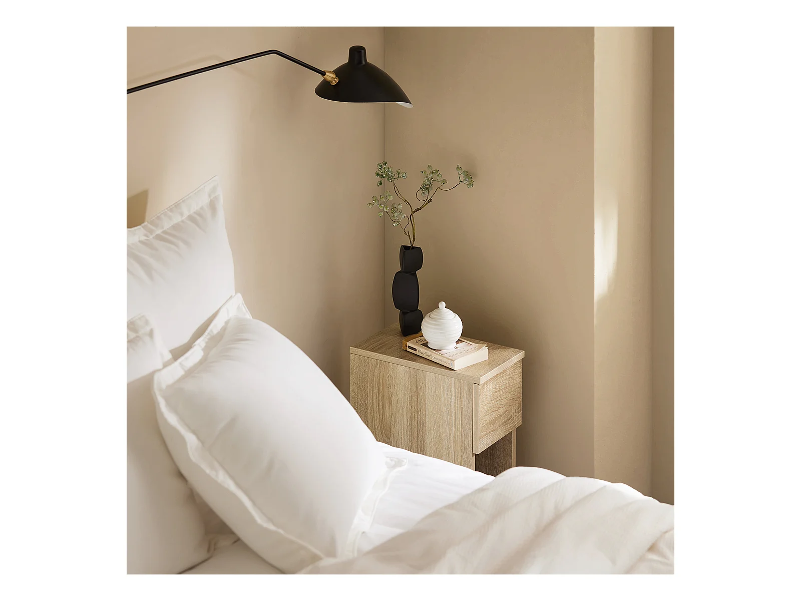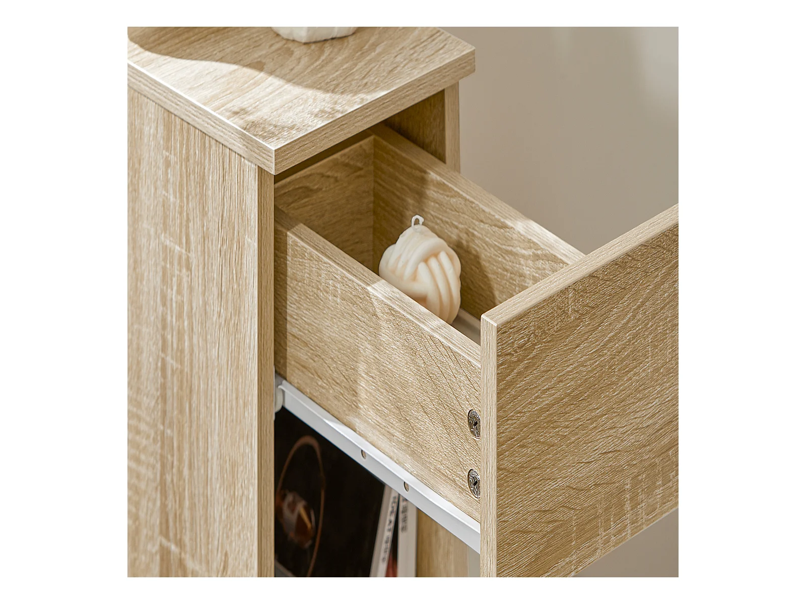 Mesita de noche con 2 cajones, acabado en roble, altura 50 cm - LENNY