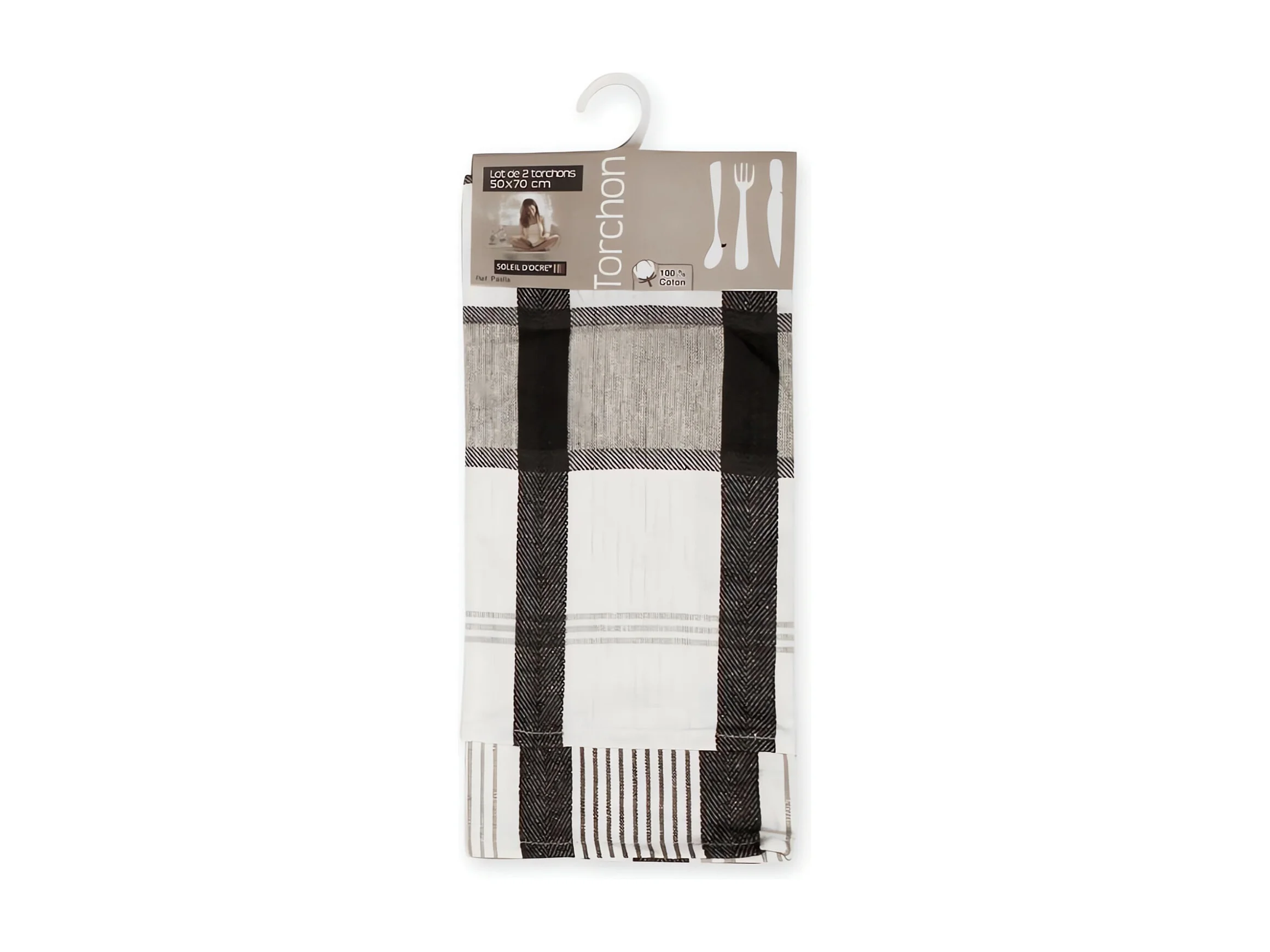 Set de paños de cocina de algodón KENT en blanco y negro, por Soleil d'Ocre