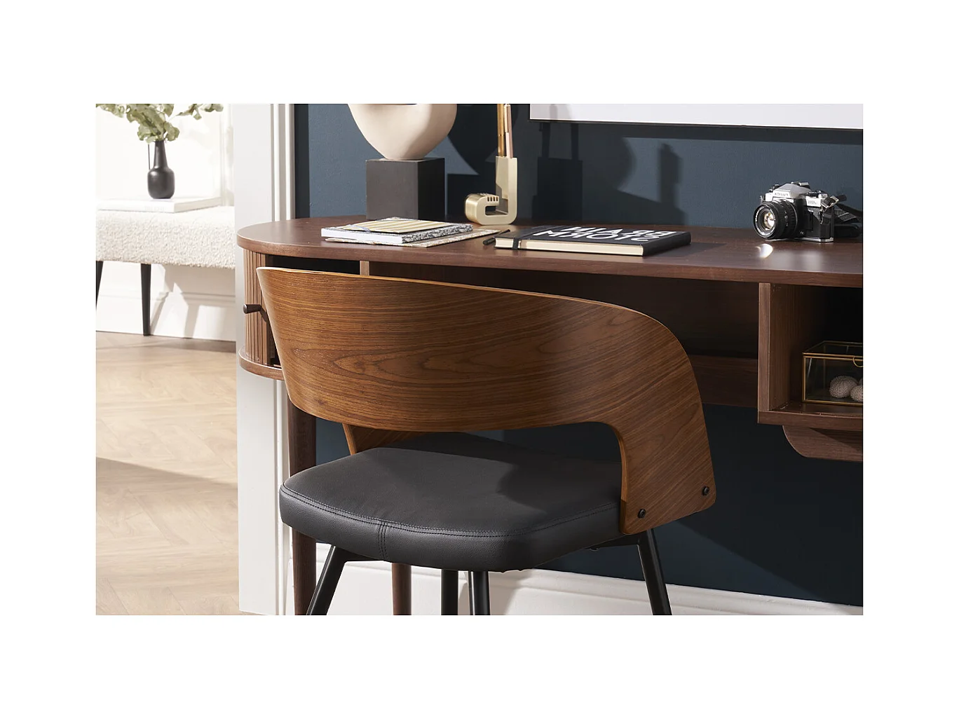 Set de 2 sillas de diseño de nogal oscuro con asiento y metal negro RIFF