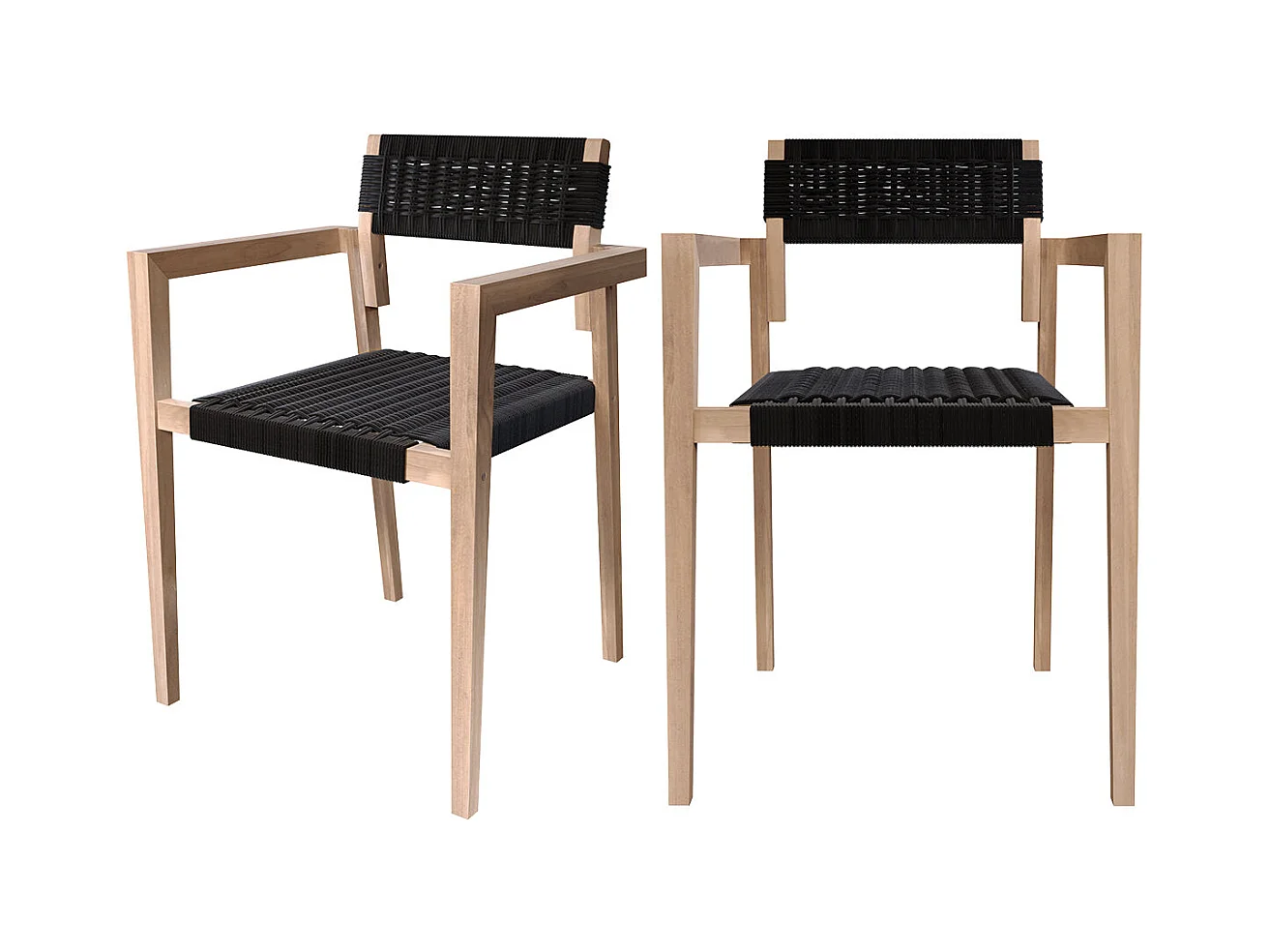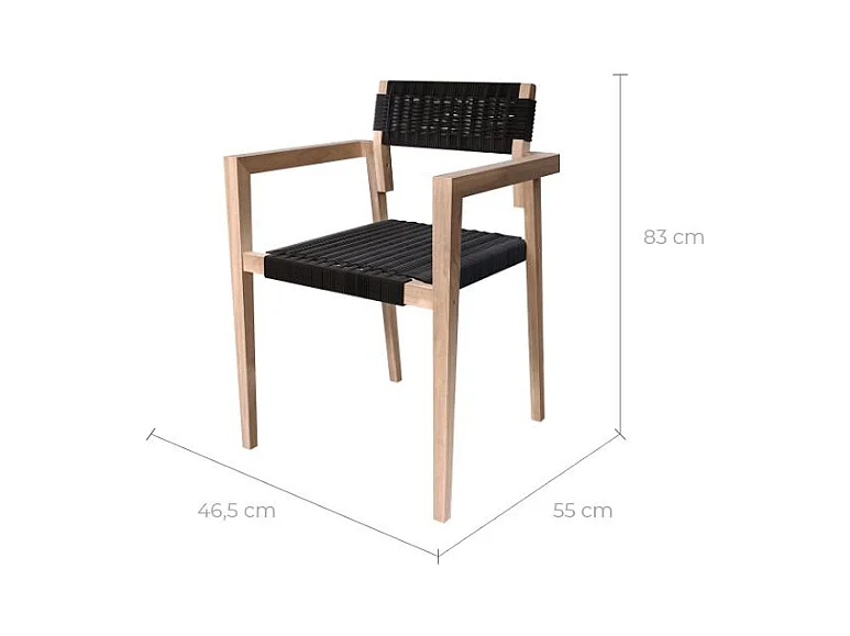 Set de 2 sillas de jardín apilables en teca y cuerda trenzada - Kapua