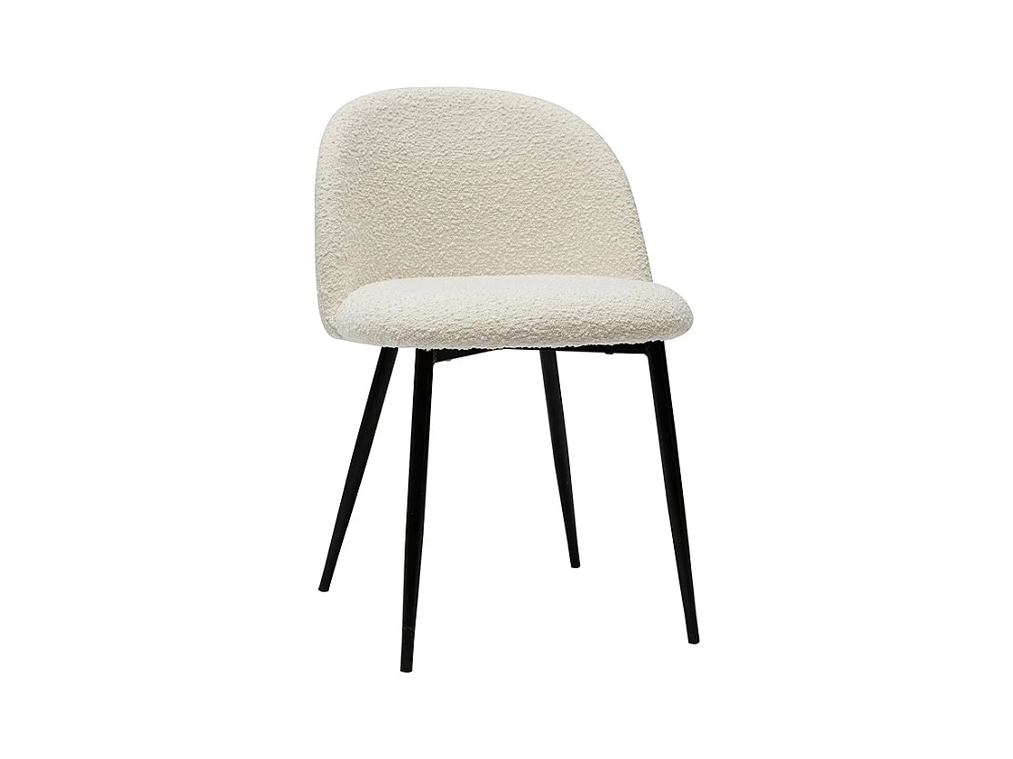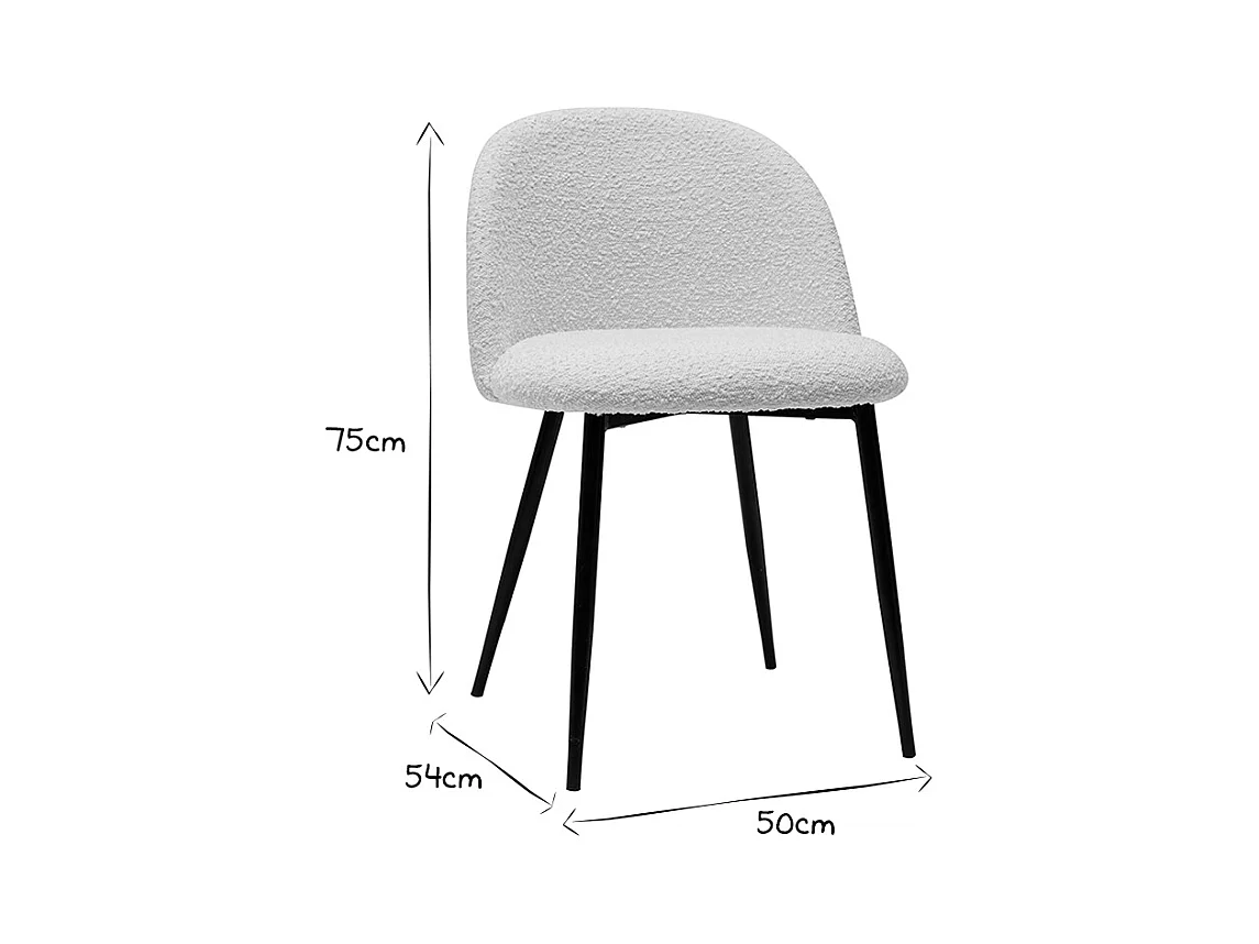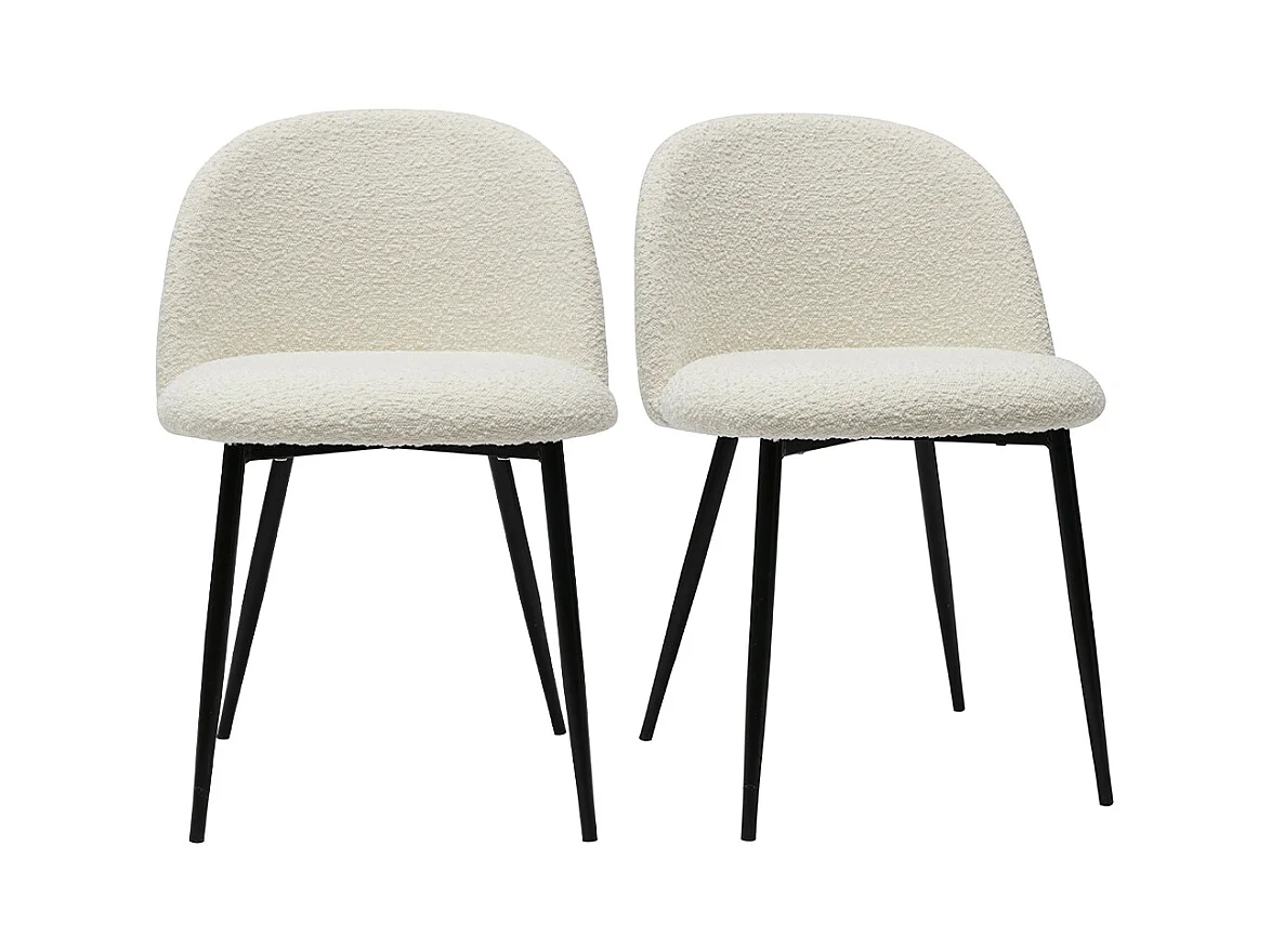 Set de 2 sillas de diseño de tela efecto borreguillo color crudo y metal negro ROSALIE