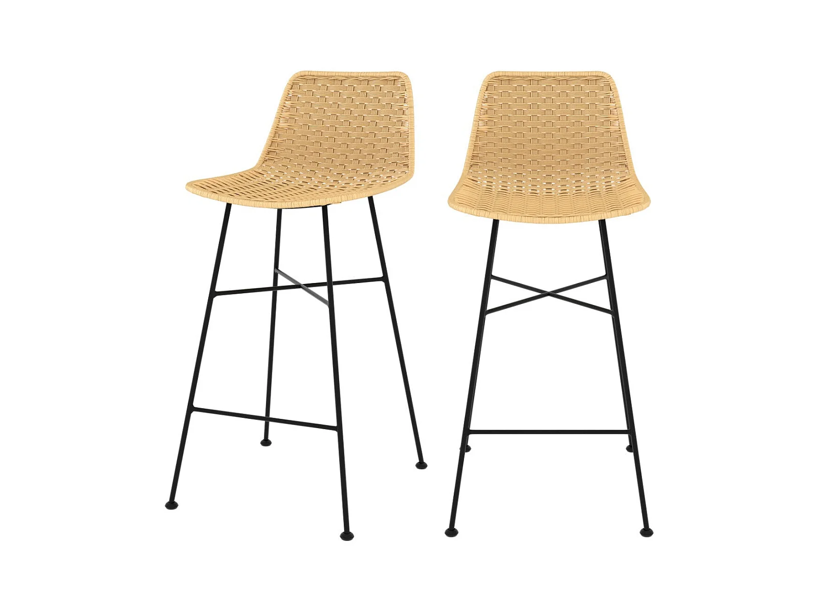 Conjunto de 2 sillas de bar CASSITA Ratán Natural