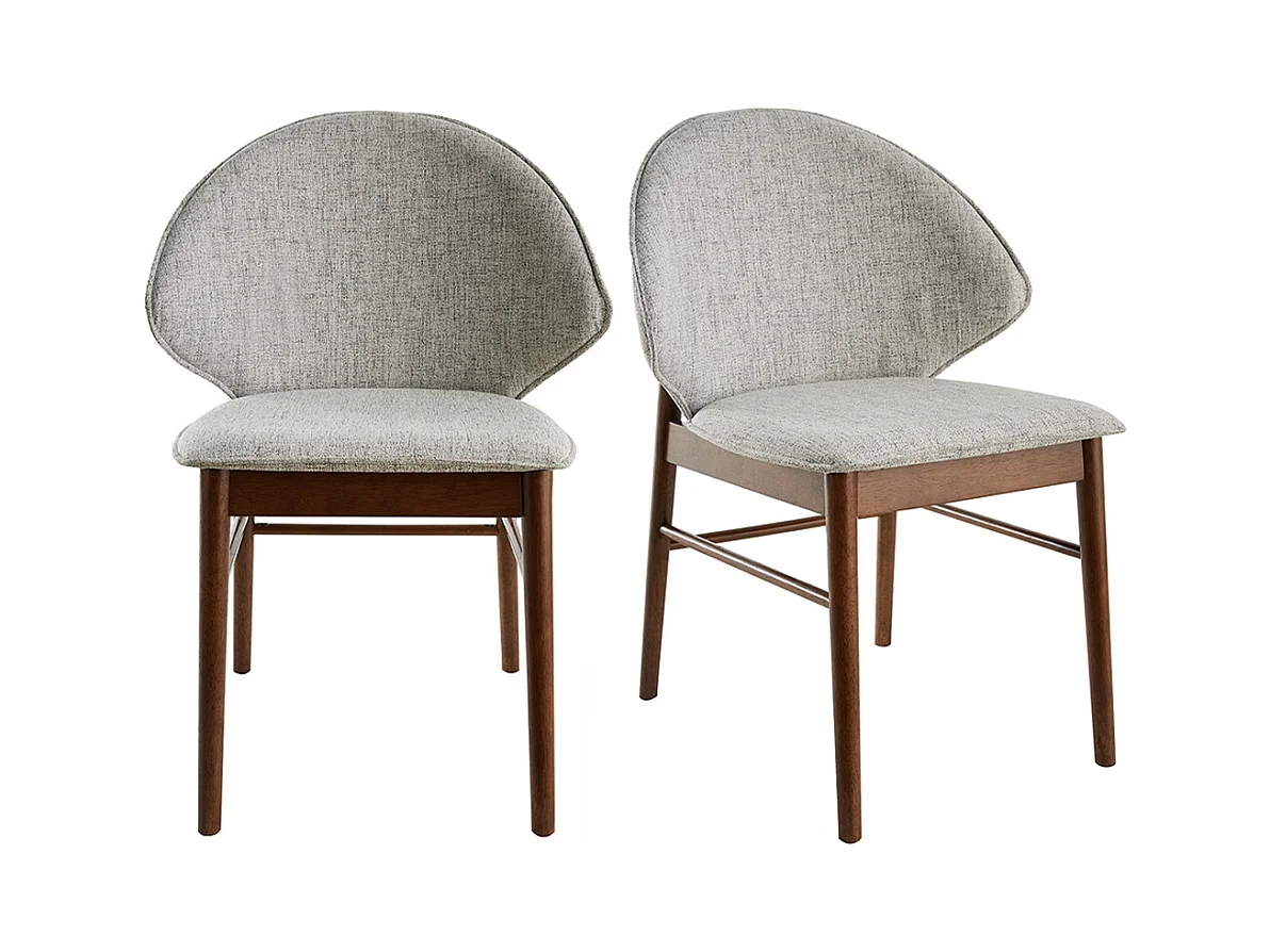 Set de 2 sillas vintage de tela gris claro y patas de nogal SPIKE