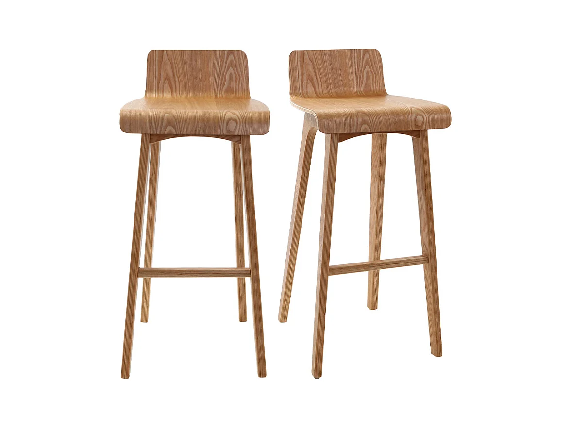 Taburete de bar Macizo - Natural - Madera - Altura del asiento 75 - Juego de 2