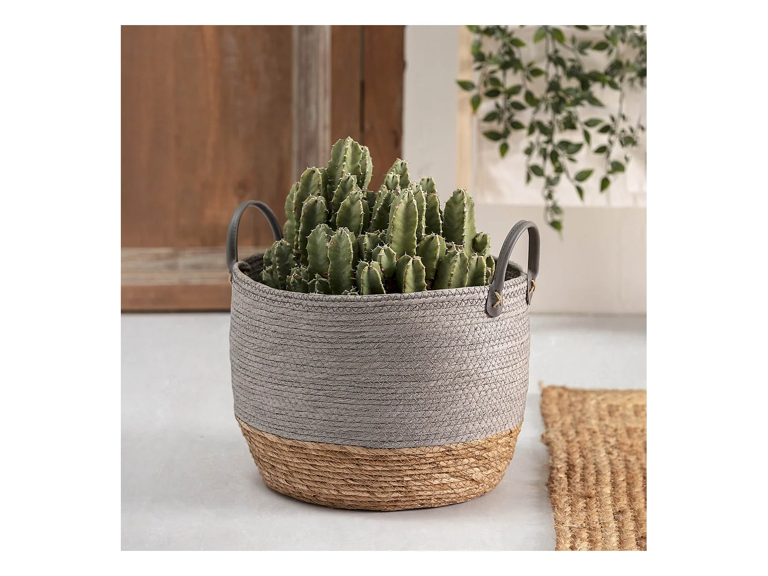 Set de 3 cestas Neves de fibra natural y papel, gris/natural