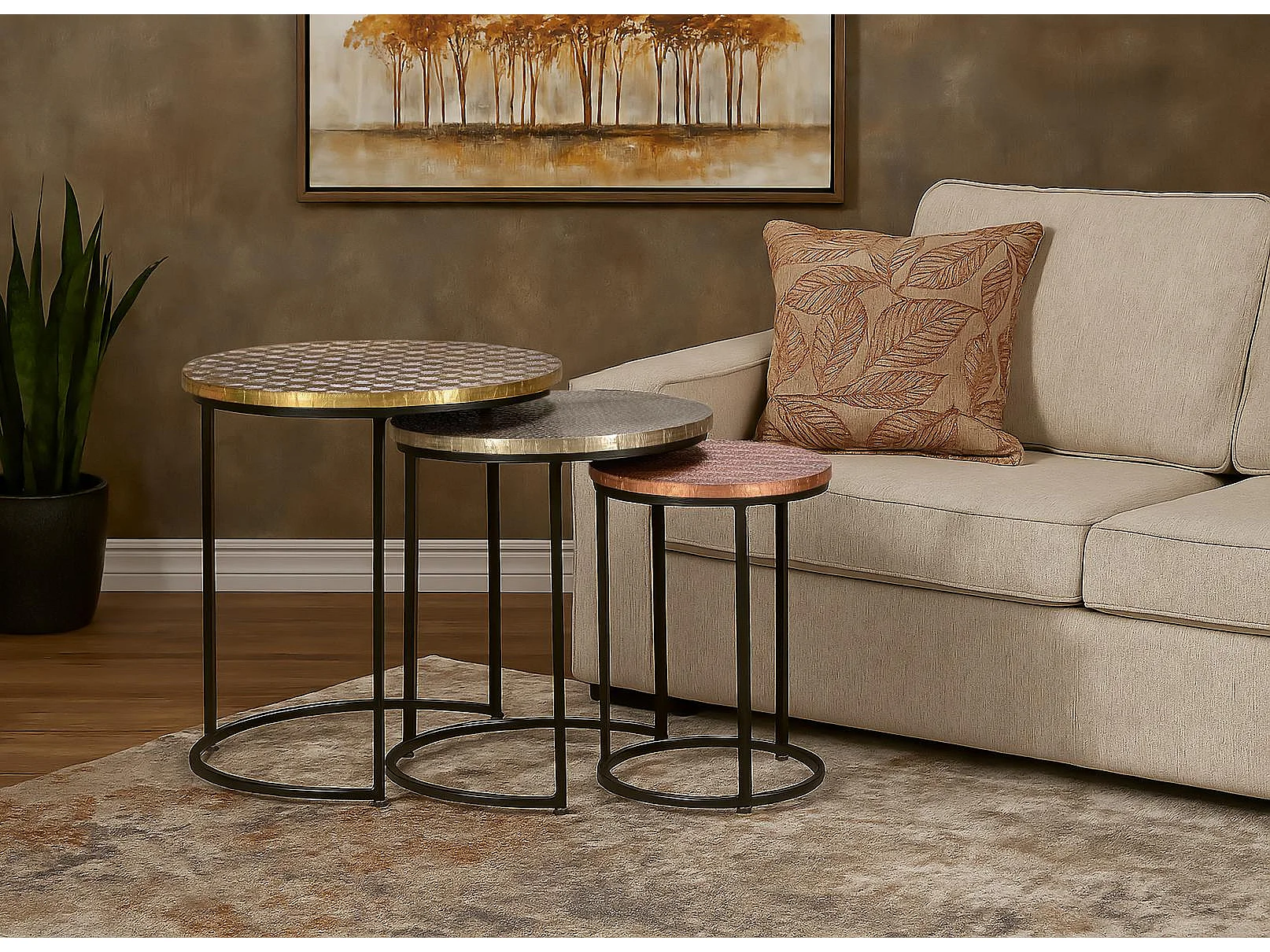 Mesitas auxiliares 3 Piezas madera de mango rugosa