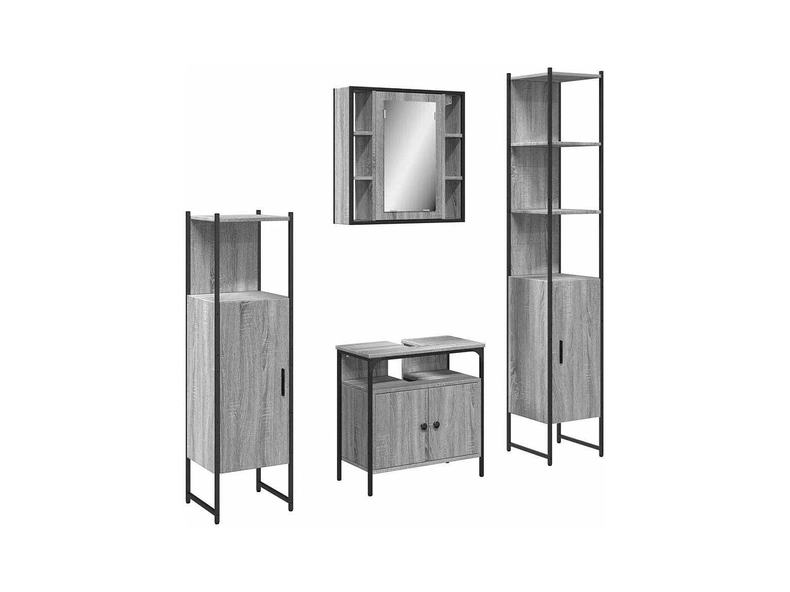 Set de armario de baño 4 pzas madera contrachapada gris sonoma ES534383