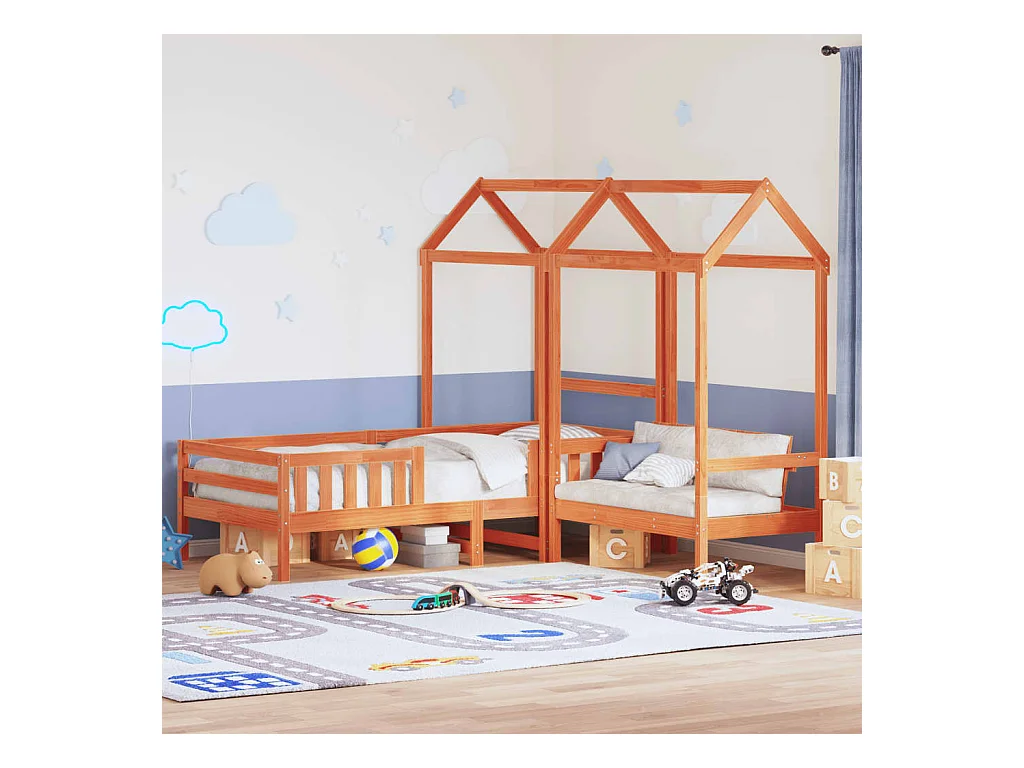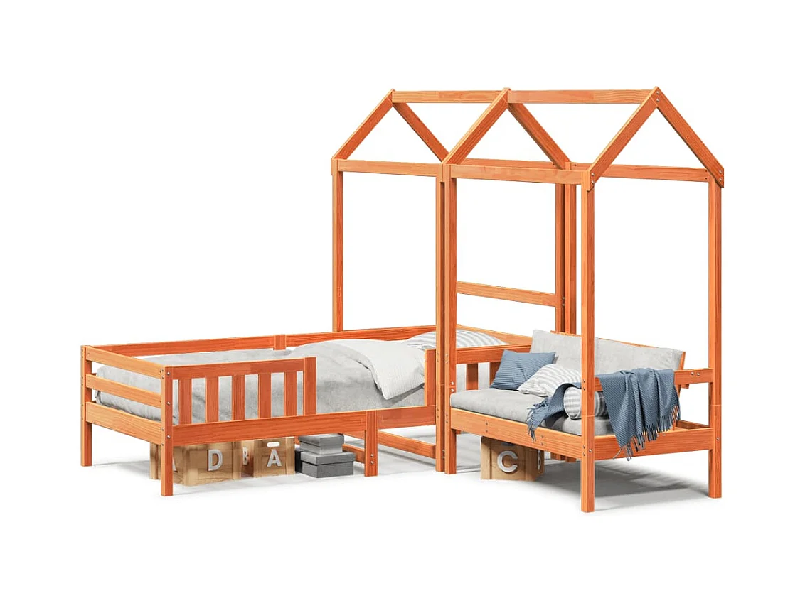 Set de cama y banco con techo madera de pino marrón 100x200 cm ES603371