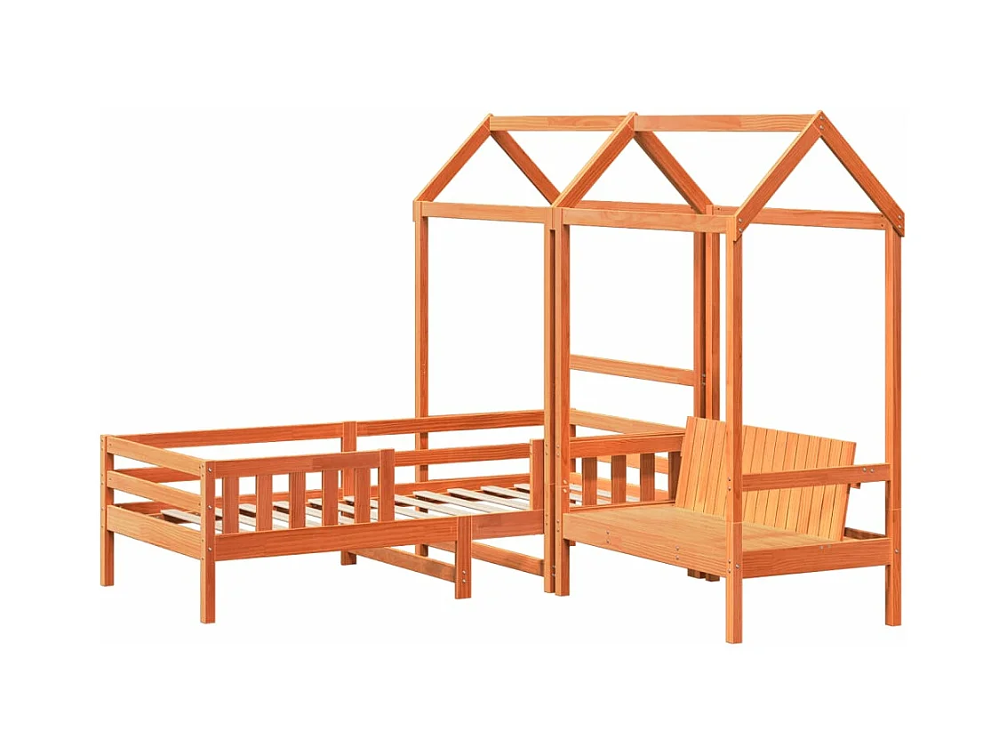 Set de cama y banco con techo madera de pino marrón 90x200 cm ES898198