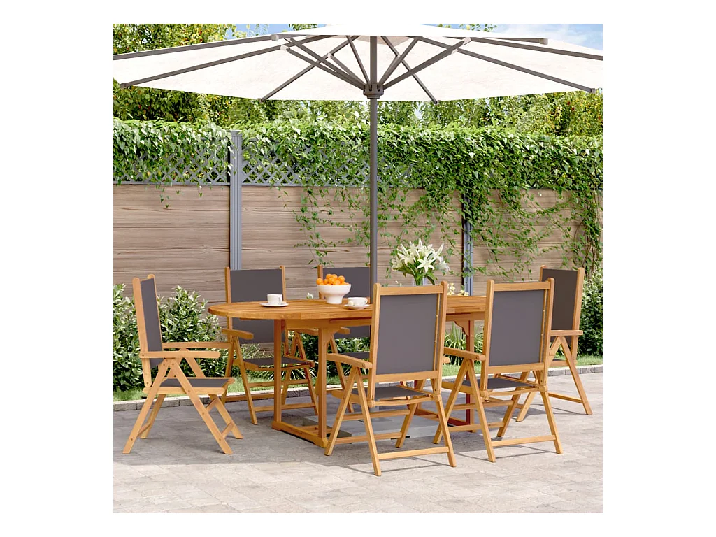 Set de comedor de jardín 7 pzas tela madera maciza antracita