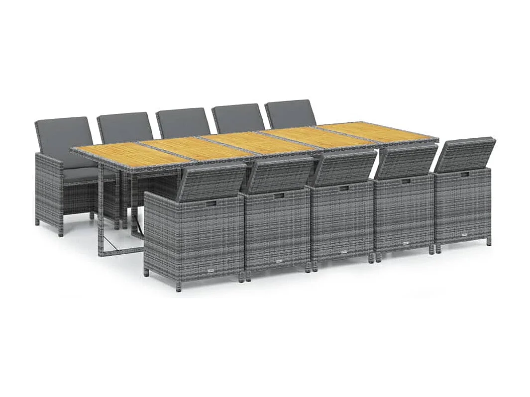 Set de comedor de jardín 11 piezas y cojines ratán sintético gris