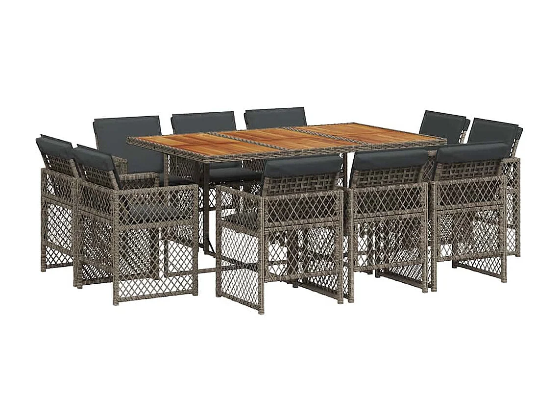 Set de comedor de jardín 11 piezas y cojines ratán sintético gris