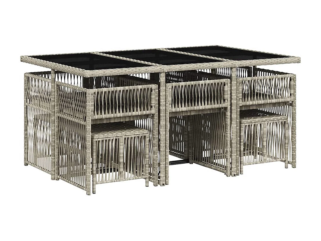 Set de comedor de jardín 11 piezas y cojines ratán sintético gris