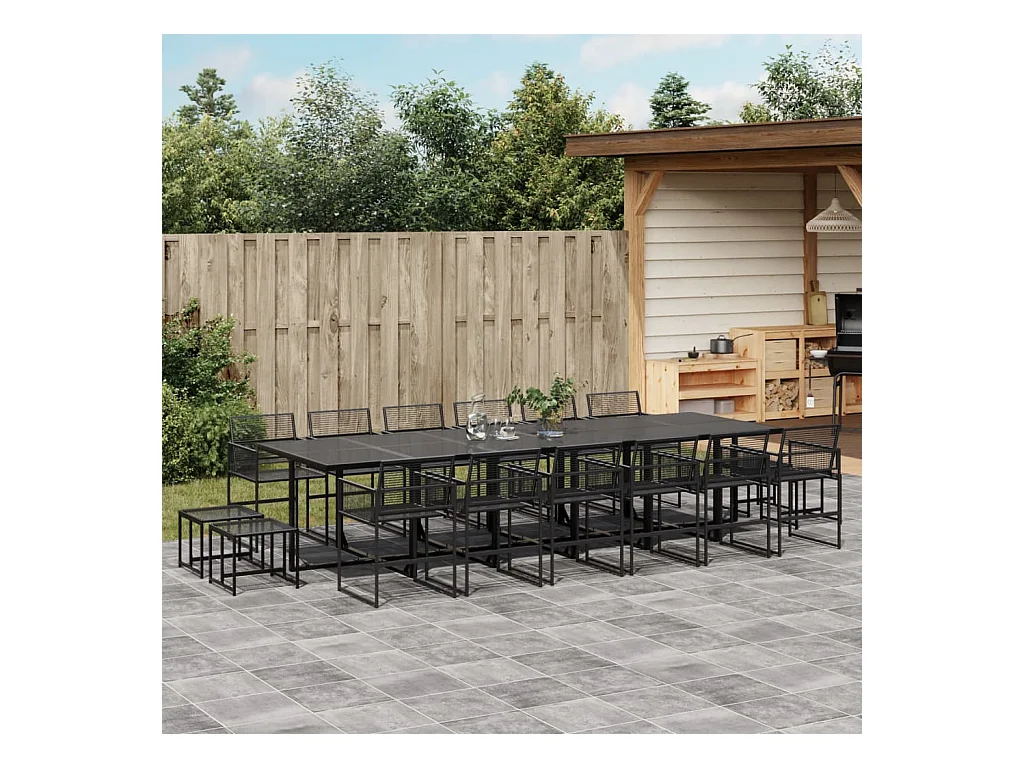 Set de comedor de jardín 15 piezas ratán sintético negro