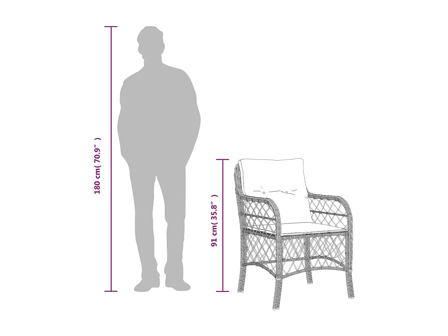 Set de comedor de jardín 7 piezas y cojines ratán sintético negro