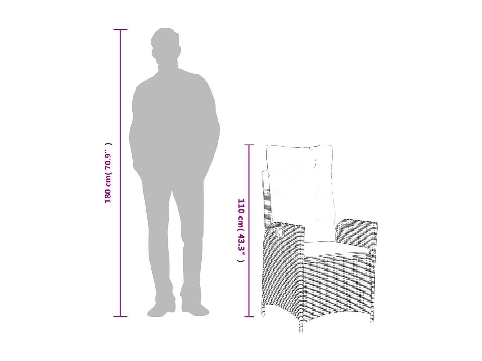 Set de comedor de jardín 7 piezas y cojines ratán sintético negro