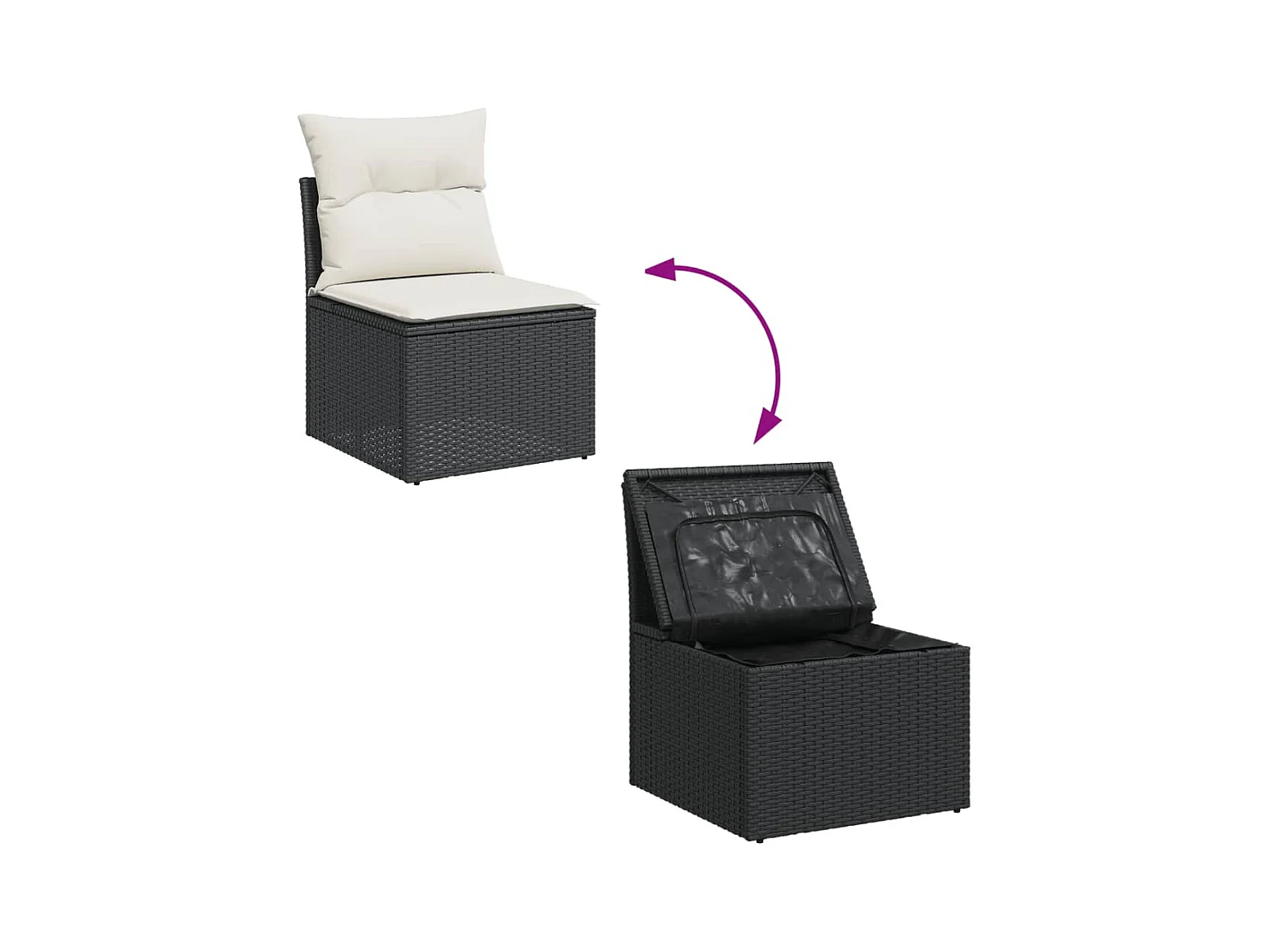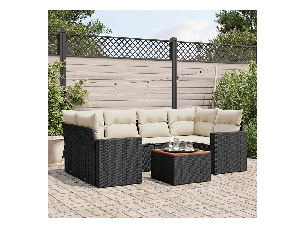 Set de comedor de jardín 7 piezas y cojines ratán sintético negro