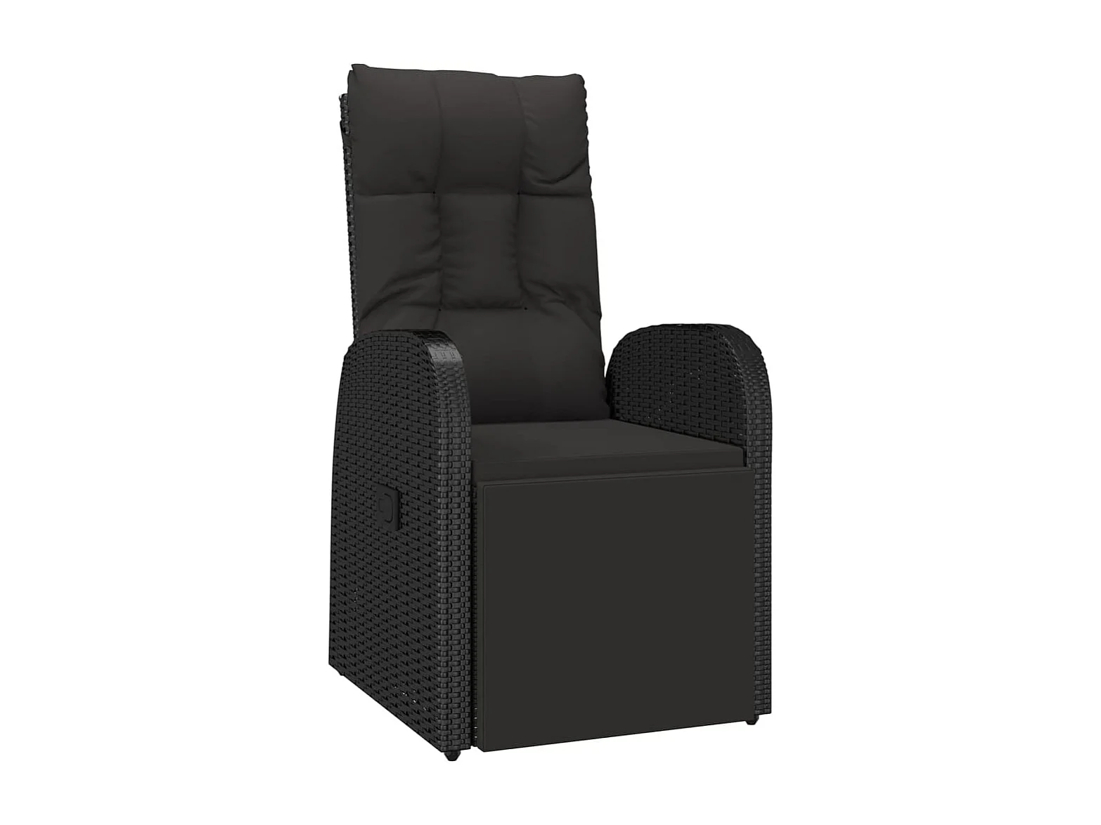 Set de comedor de jardín 7 piezas y cojines ratán sintético negro