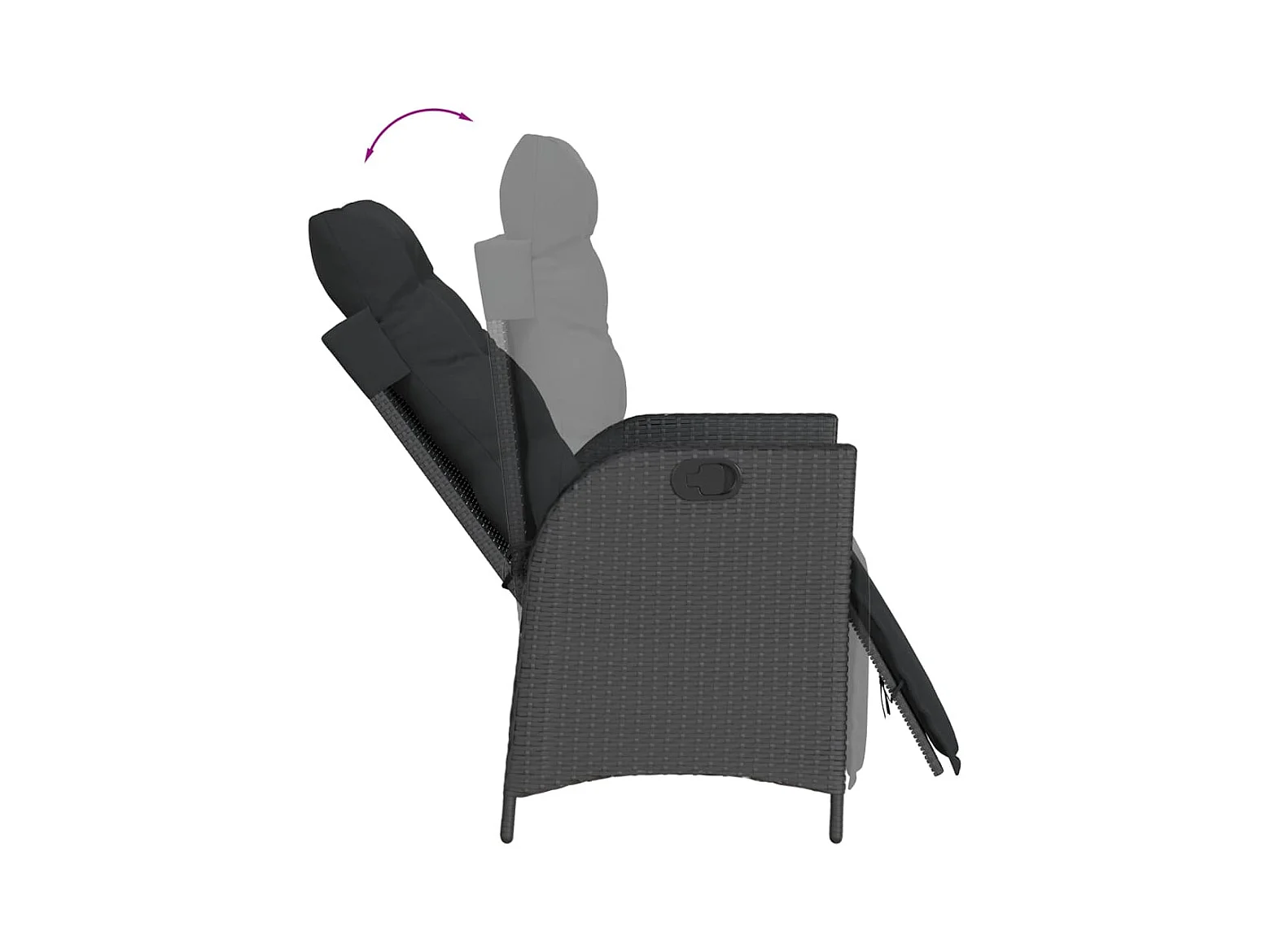 Set de comedor de jardín 7 piezas y cojines ratán sintético negro