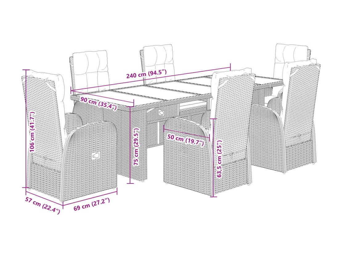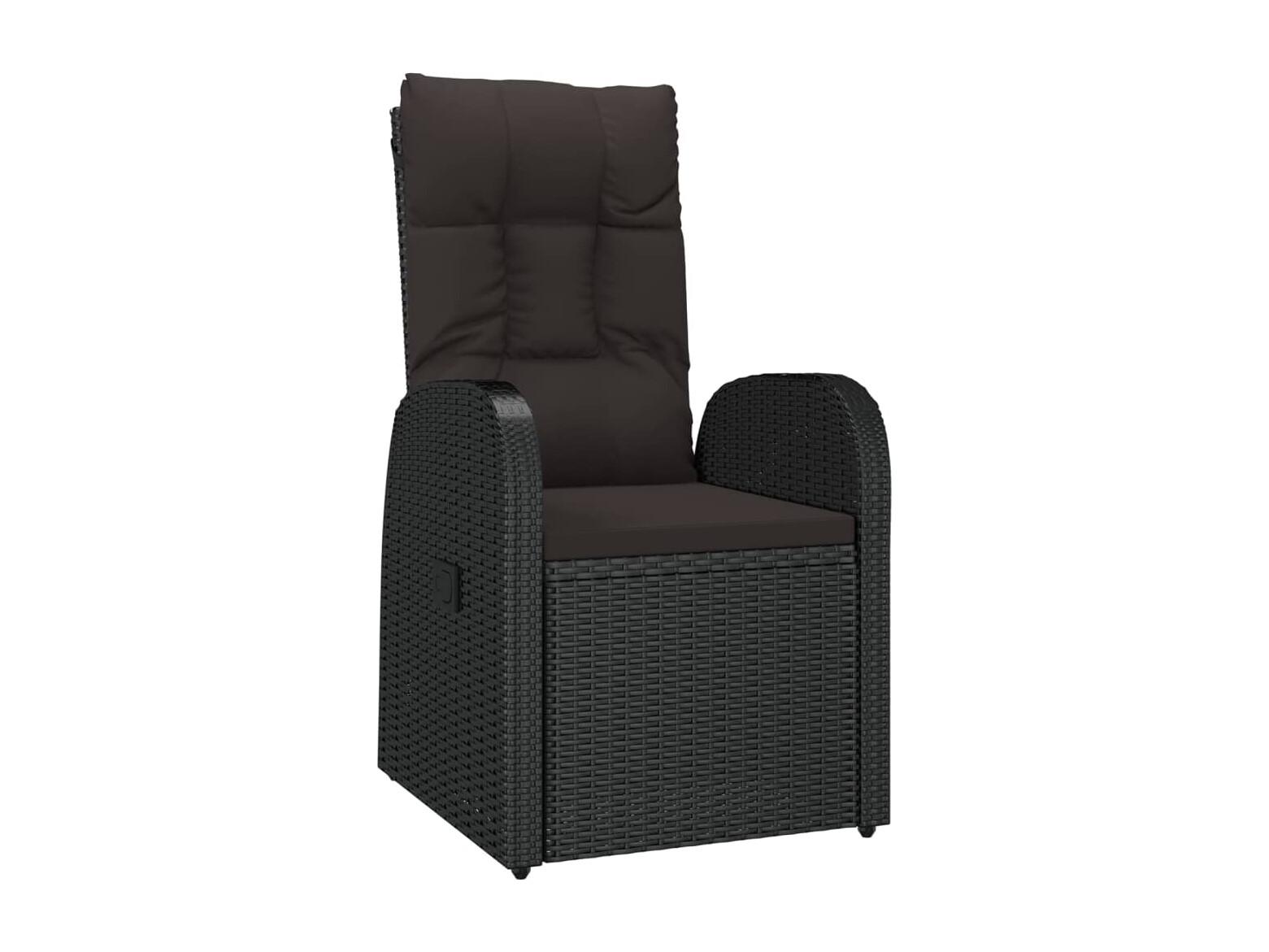 Set de comedor de jardín 7 piezas y cojines ratán sintético negro