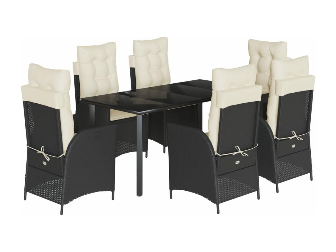 Set de comedor de jardín 7 piezas y cojines ratán sintético negro