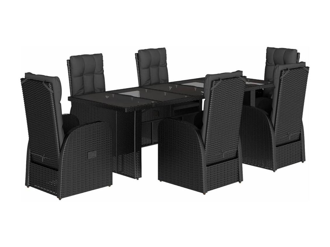 Set de comedor de jardín 7 piezas y cojines ratán sintético negro